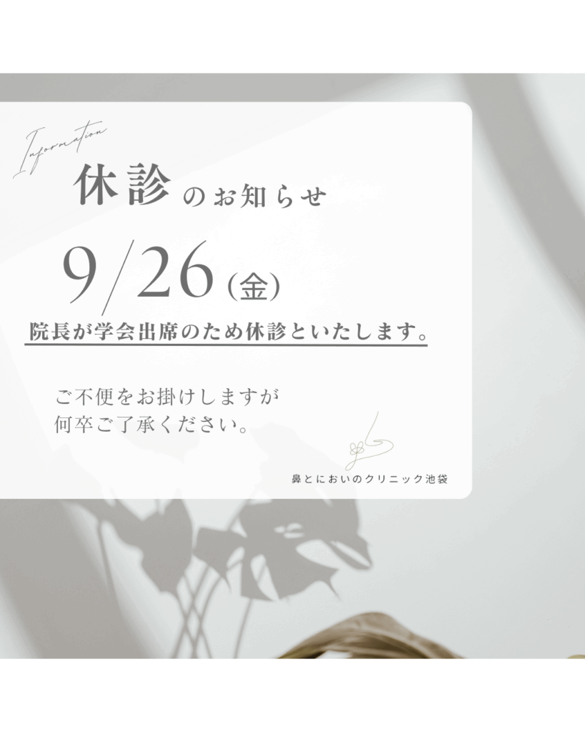 9月26日(金)は、院長が学会出席のため休診といたします。